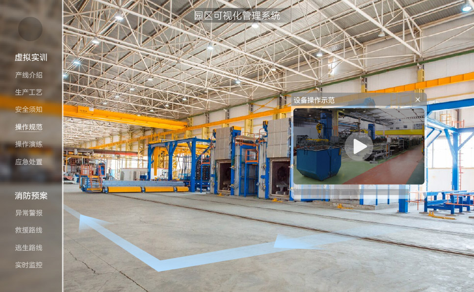 针对园区设备应用及巡检工作,众趣科技可生成模拟仿真实训内容,并嵌入图文、视频教学等,辅助新员工掌握应急技能、巡检技能等知识。此外,对于工厂车间等场所,客户无需亲临现场即可通过线上平台获得身临其境的参观体验,有效提高客户信任度与合作意愿。