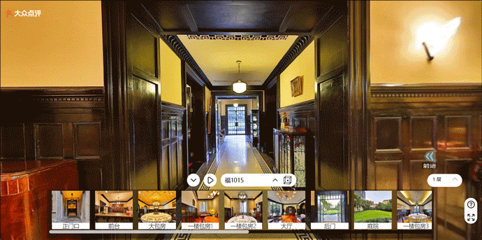 以【福 1015】高端本帮菜馆为例,其独栋洋房与 1930 年代老上海私宅风格本身就是品牌叙事的重要部分。通过众趣自研设备 SPACCOM 系列,我们对建筑内外进行了毫米级精度数字化采集,不仅精准还原 10 间独立包厢的分布,更细致呈现古董家具、贝母窗等装饰细节。